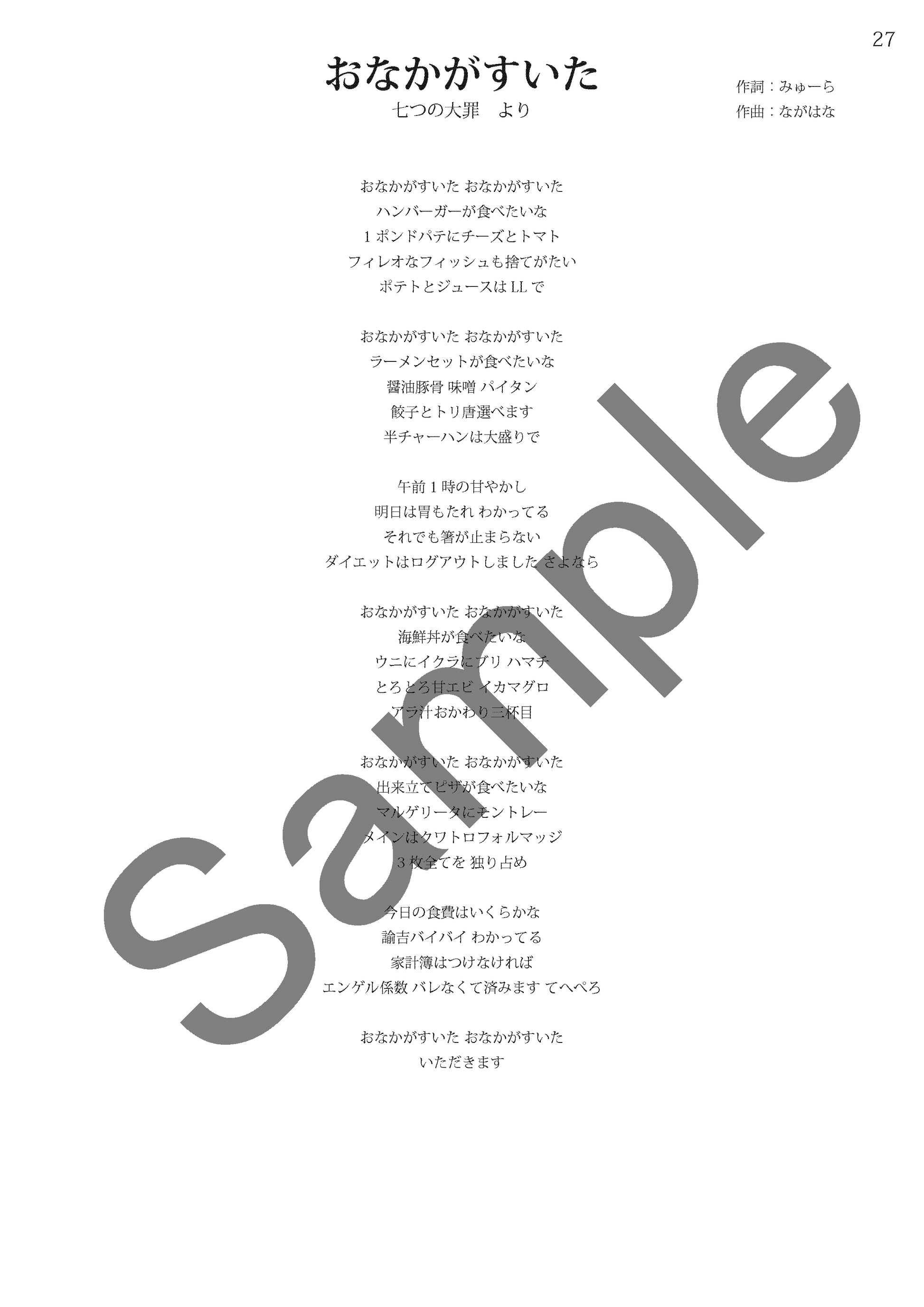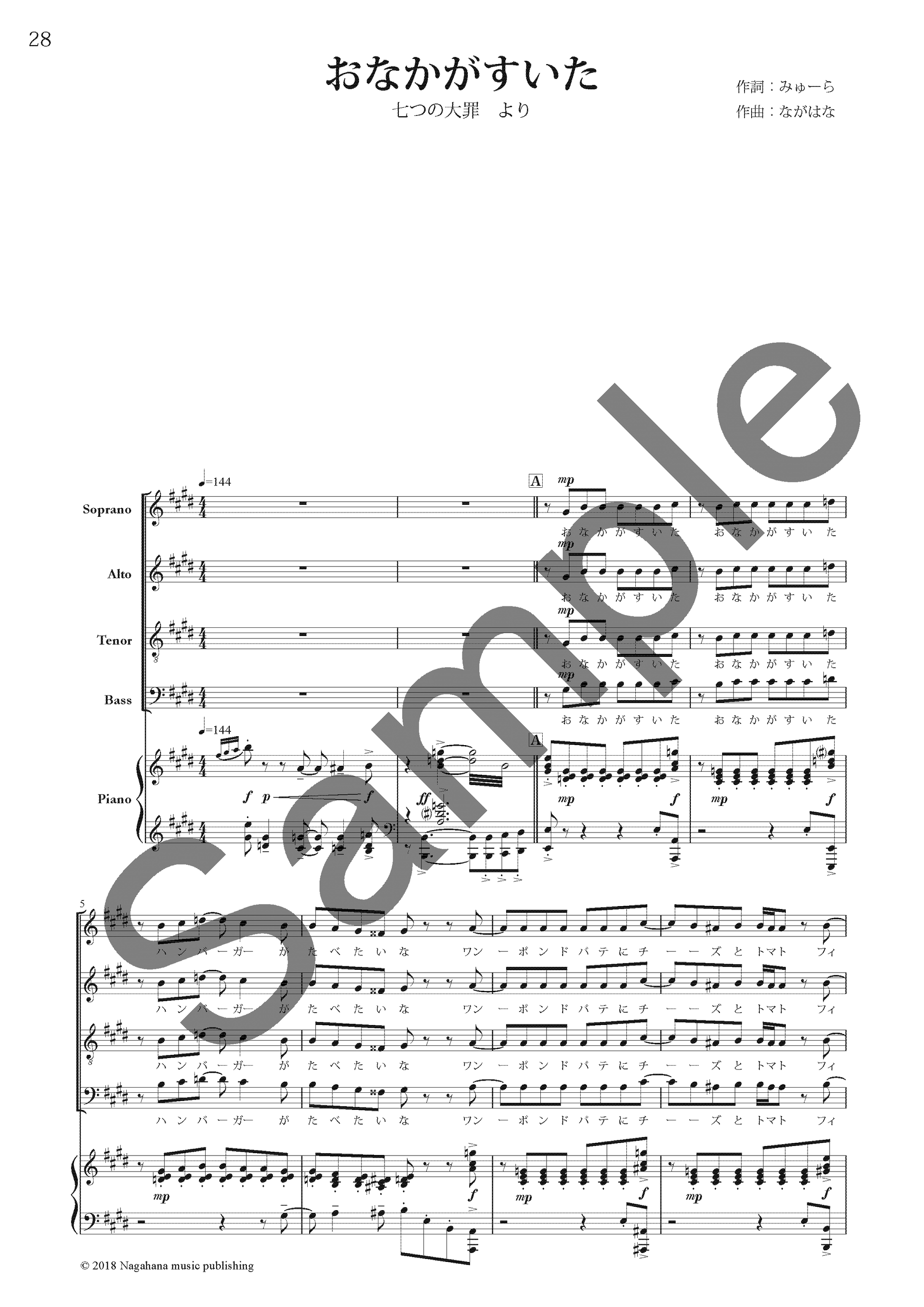 作詞/作曲:ながはな - おなかがすいた (混声合唱曲集「七つの大罪」より暴食の罪)